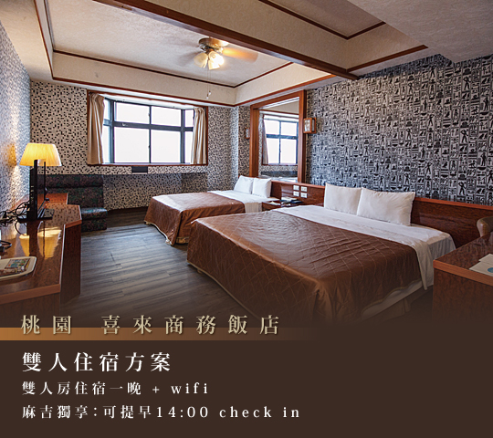 只要999元,即可享有【桃園-喜來商務飯店】雙人住宿方案〈含雙人房住宿一晚 + wifi〉麻吉獨享:可提早14:00 check in