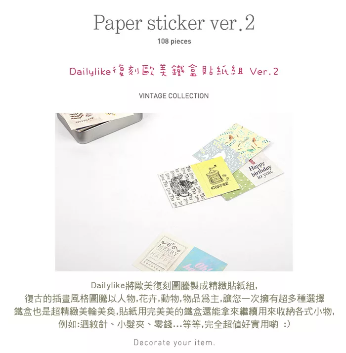 Dailylike復刻歐美鐵盒貼紙組Ver.2