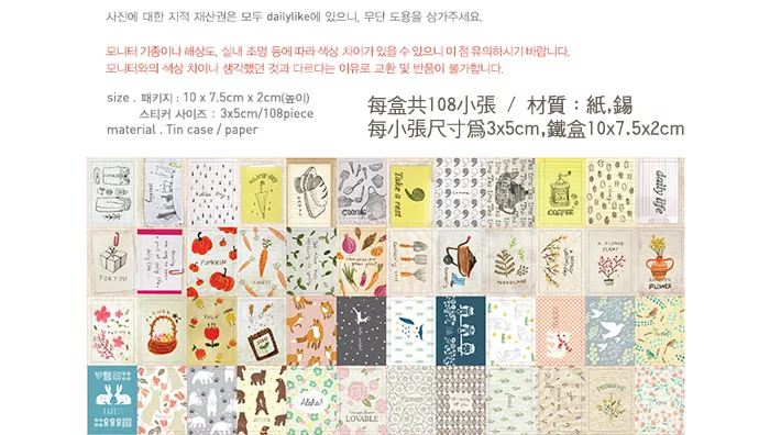 每盒共108小張,每小張尺寸:3.5×5.1cm。