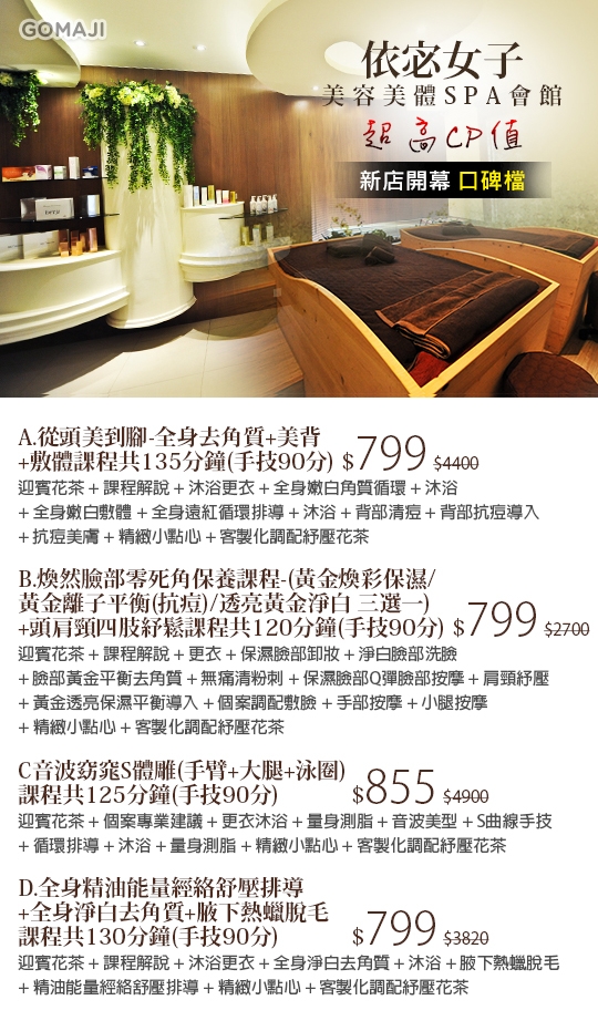 夠麻吉折價券 依宓女子美容美體SPA會館 – 163331