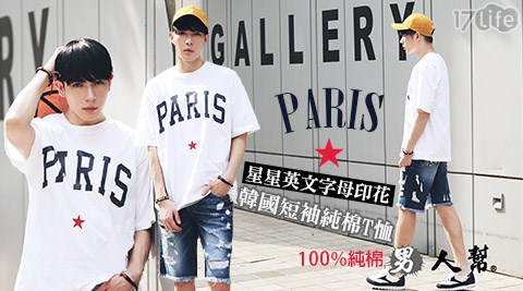 17Life 宅配 男人幫-100%純棉-韓國PARIS星星英文字母印花短袖純棉T恤(JK006)