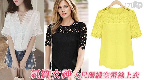 17life現金券 氣質女神大尺碼縷空蕾絲上衣- 分享