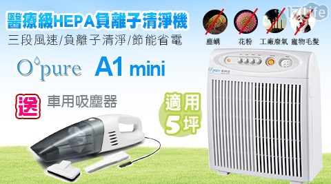 17Life 宅配 Opure臻淨-A1 mini負離子空氣清淨機+贈外銷日本車用吸塵器