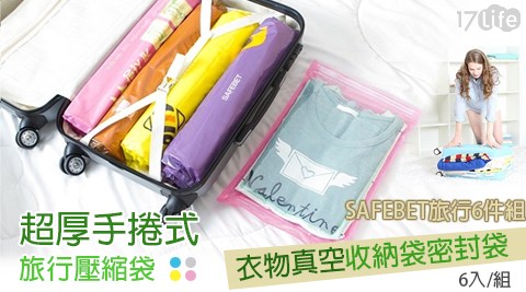 17Life 宅配 SAFEBET旅行6件組-超厚手捲式旅行壓縮袋/衣物真空收納袋密封袋