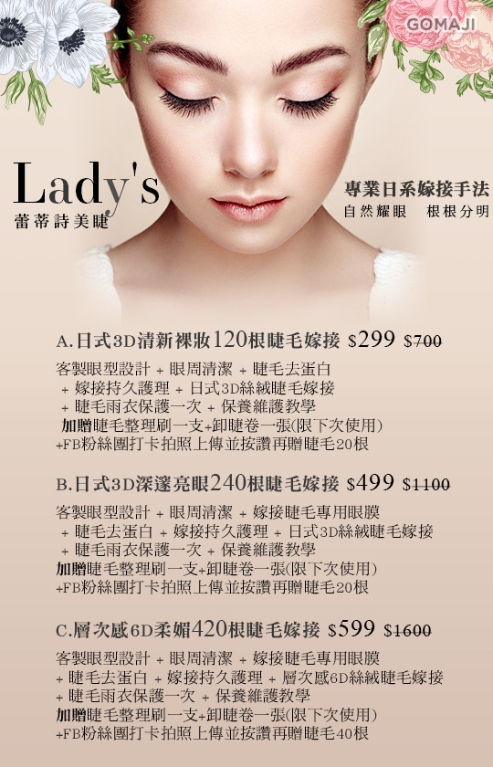 gomaji麻吉券序號2017Lady’s蕾蒂詩美睫 – 149207美容體驗