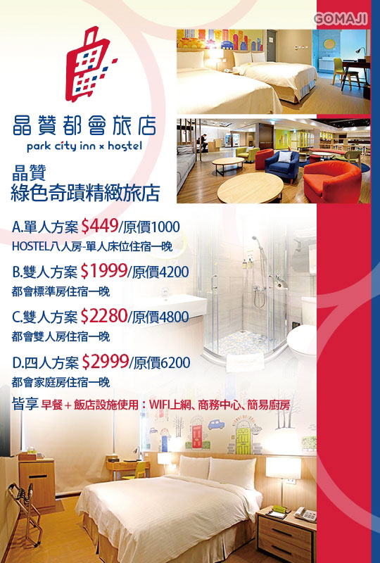 只要449元起,即可享有【晶贊都會旅店-台北永和】『晶贊綠色奇蹟精緻旅店』〈含A.Hostel八人房-單人床位/B.都會標準房/C.都會雙人房/D.都會家庭房住宿一晚 + 早餐 + 飯店設施使用:WIFI上網、商務中心、簡易廚房〉