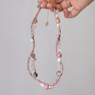ALYSSA & JAMES紫色淡水珍珠 樹紋瑪瑙 紅木紋瑪瑙 粉晶 頸鏈