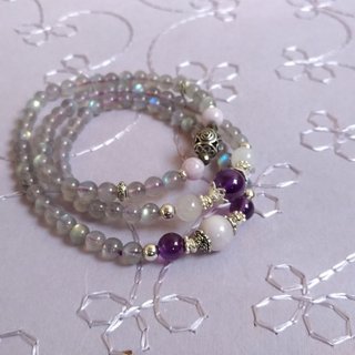 Amanda L.(天然石水晶手鍊)藍光冰種拉長石+紫晶紫鋰