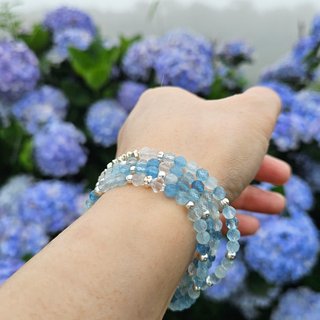 Amanda L.海藍寶x藍月光石x月光石x赫基蒙白水晶x珍珠x貝珠x白水晶手鍊